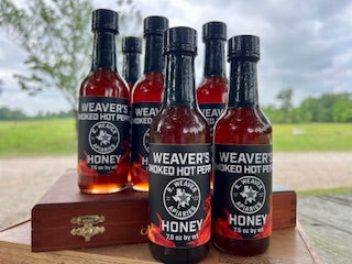 Our small batch hot pepper honey is made from infusing wildflower honey, produced by our very own bees, with the flavor of arbol chilis and fresno peppers.
